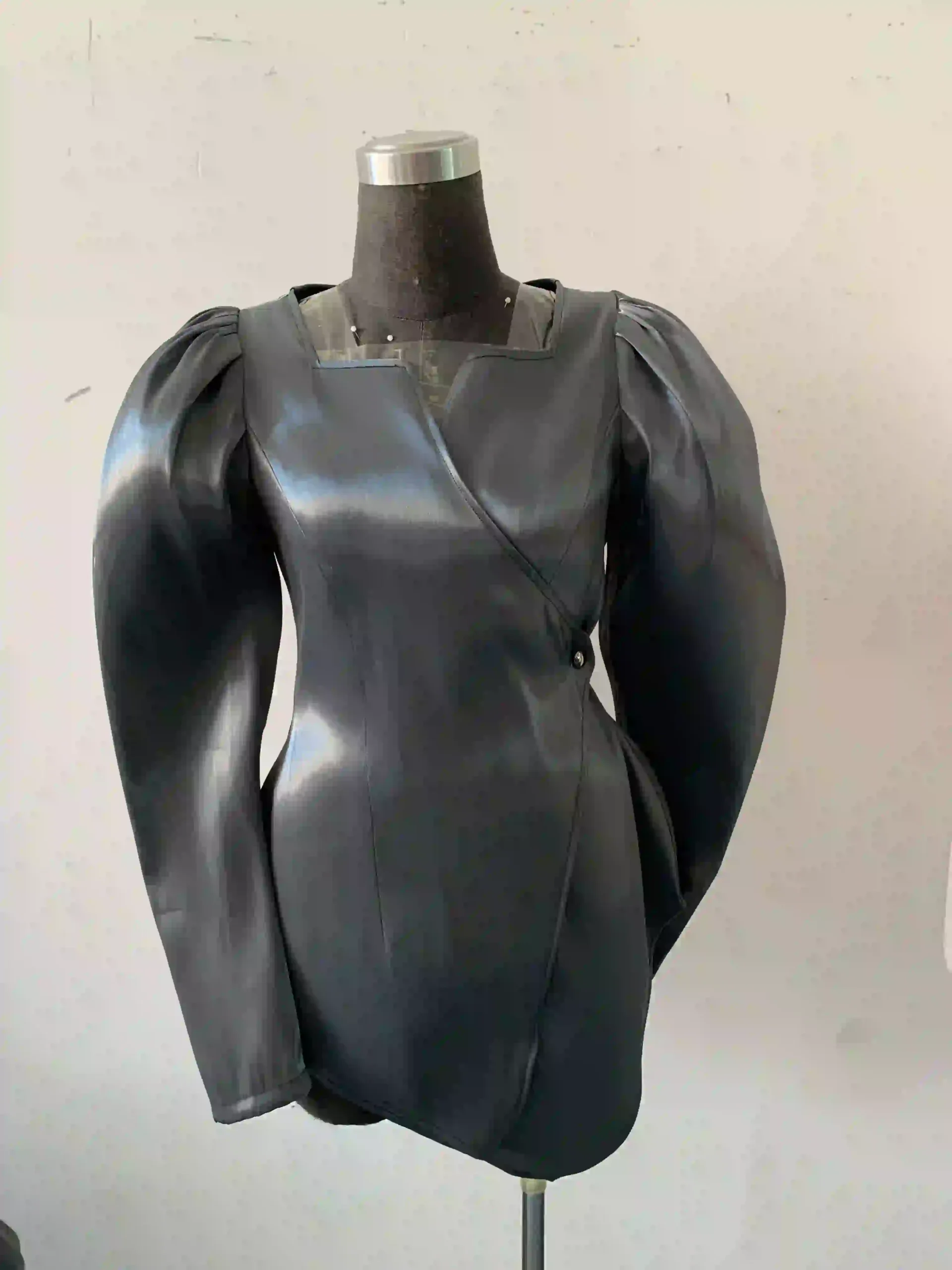 – Fabric texture: Made of lustrous leather fabric, it presents a high-end matte metallic luster. The touch is crisp and well-shaped, exuding a cool and stylish aura, enhancing the quality and recognition of the outfit.