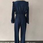 This jumpsuit features a flattering V – neckline that accentuates your collarbone, adding a touch of allure. The long sleeves offer versatility for different seasons, while the charming ruffle details on the shoulders and sides bring a feminine and playful vibe.