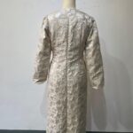 This dress is made from high-quality jacquard fabric, where the intricate floral patterns are woven directly into the fabric during the weaving process  The result is a richly textured surface that feels both luxurious and structured.