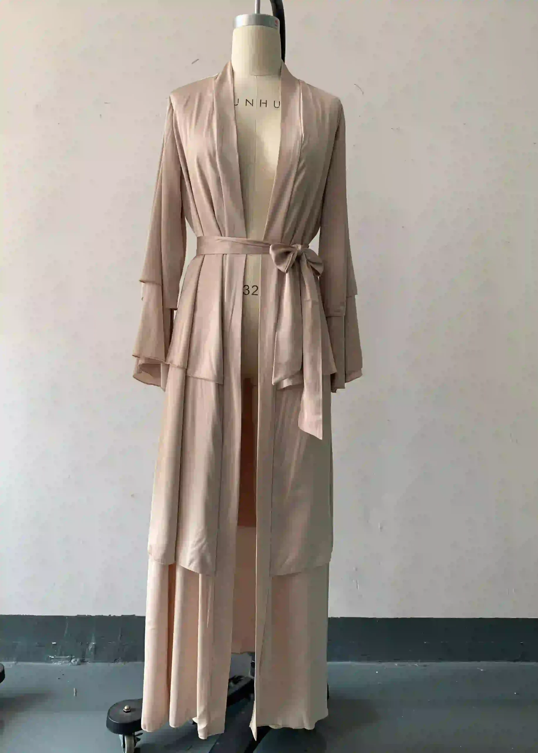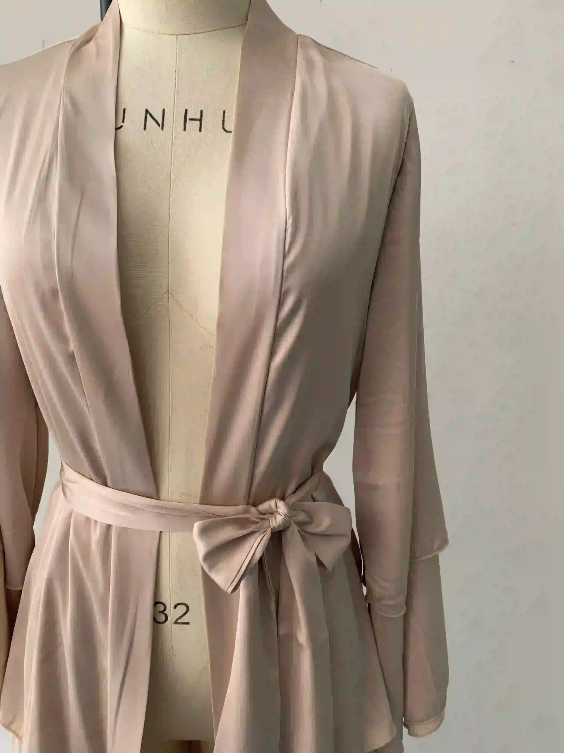 – Ingenious details: The layered cuffs echo the body of the garment, creating a lively and flowing look as you walk. The tie bow decoration adds a romantic and sweet element, which is different from the monotony of ordinary bathrobes.