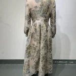 Designed with a classic round neckline and long sleeves, this midi-length dress offers a graceful, modest silhouette. The clean lines and all-over floral texture make it suitable for formal occasions or as part of a custom fashion collection. Understated yet refined, it’s a beautiful blend of craftsmanship and elegance.