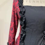 Retro flared sleeve design: The long-sleeved part adopts a retro flared sleeve style, with lace trim on the cuffs. It is both retro and elegant, adding a touch of feminine grace while also making the arm lines look more slender.