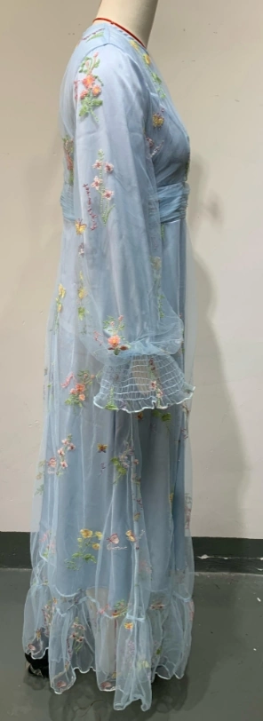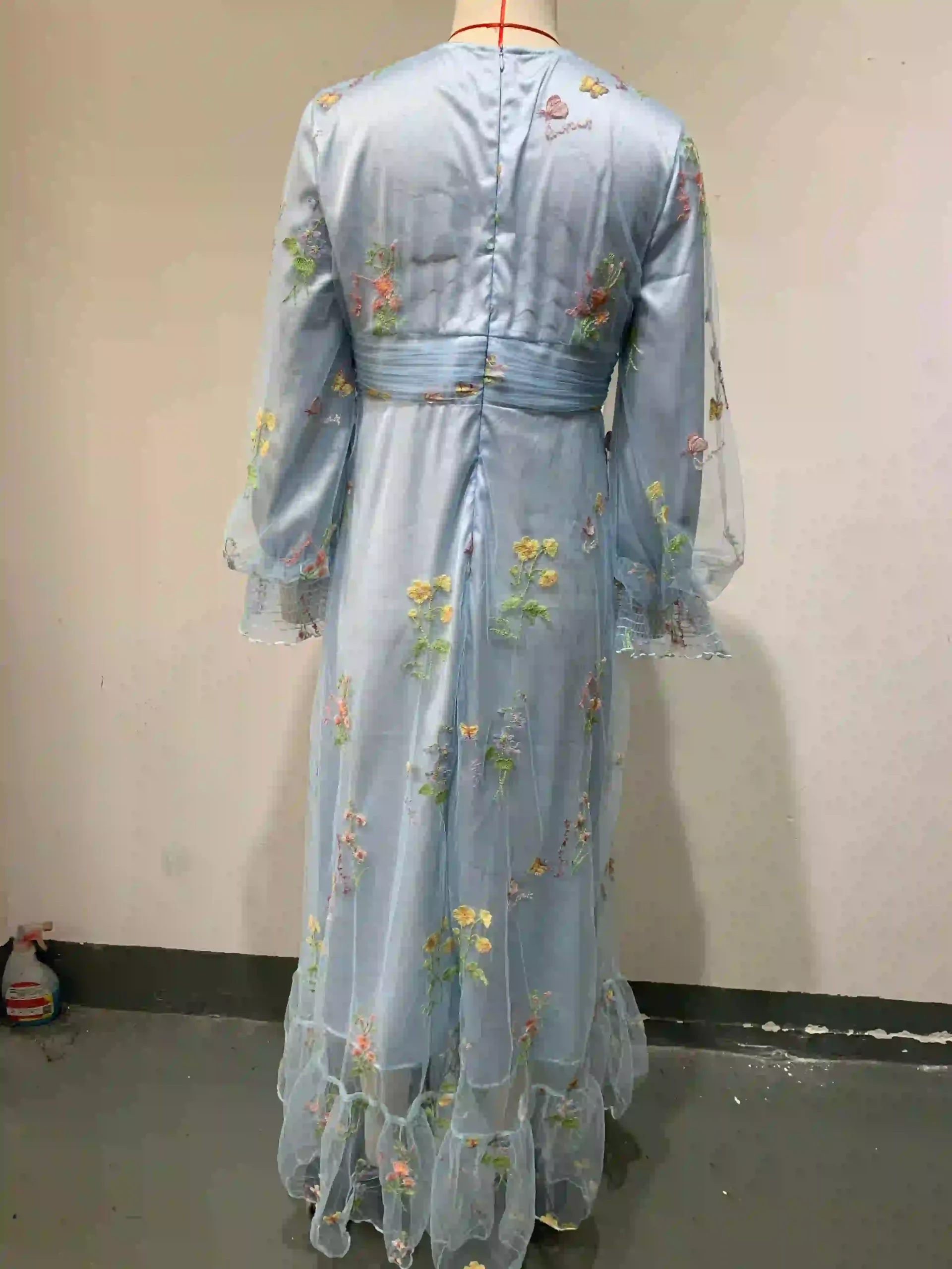 “Misty Blue Flower Realm” Organza embroidered long dress