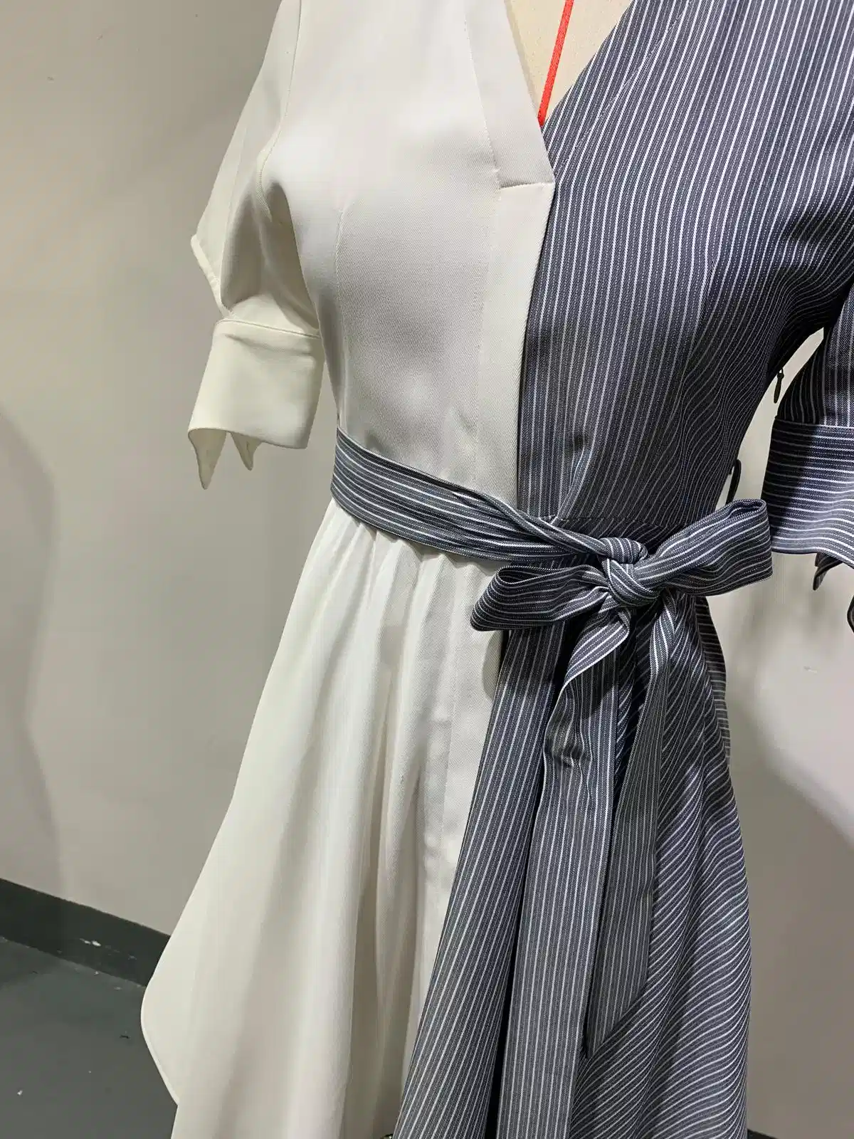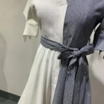 “Patchwork Style: Contrasting Color Asymmetric Shirt Dress”
