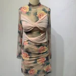 – Print elements: Exquisite floral prints with harmonious colors create a fresh and romantic atmosphere for the dress, easily shaping an eye-catching look.