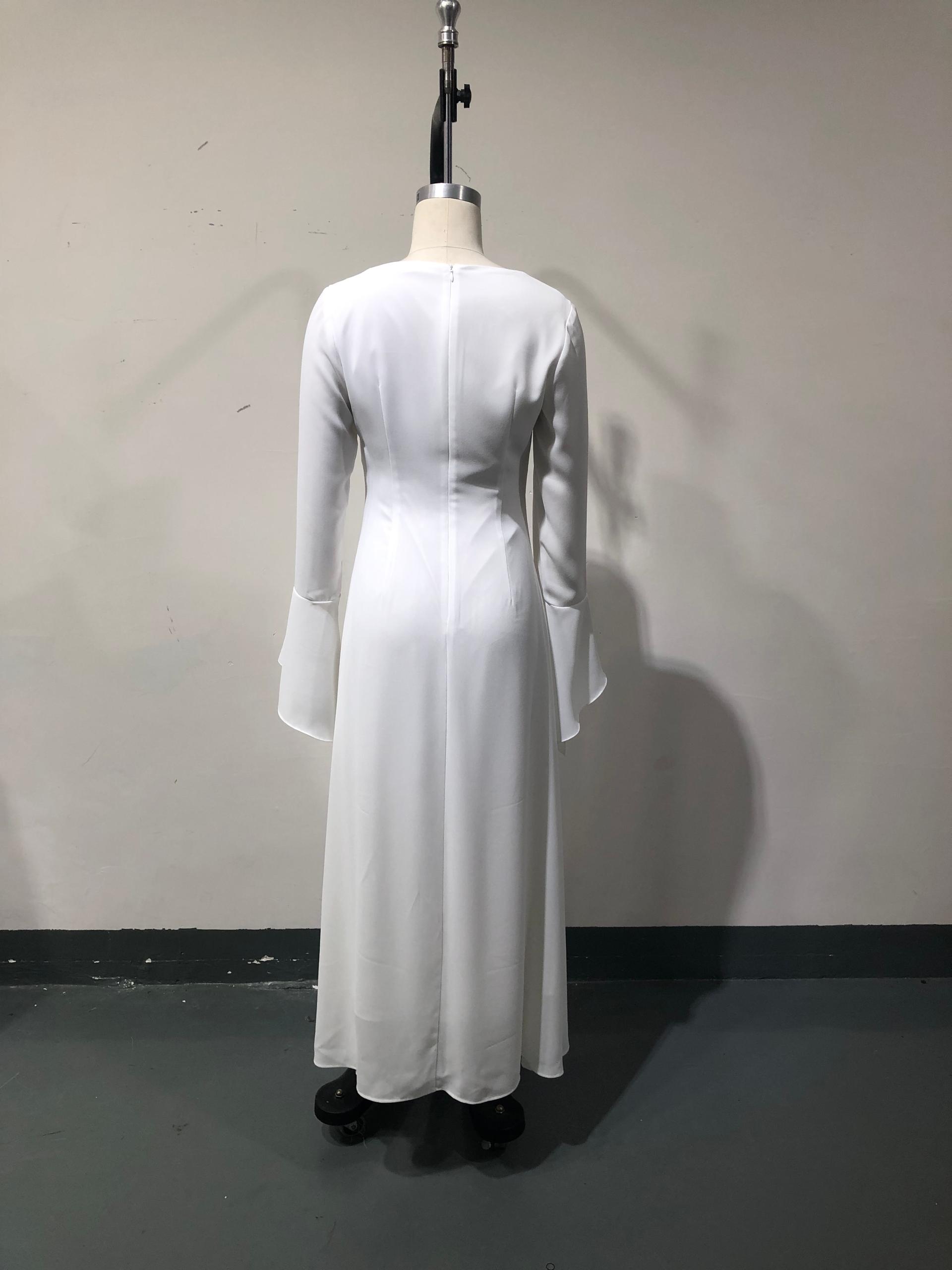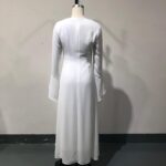 White Chiffon Maxi Dress with Flared Bell Sleeves