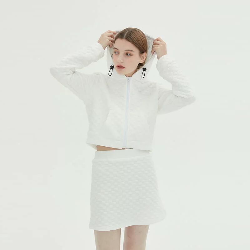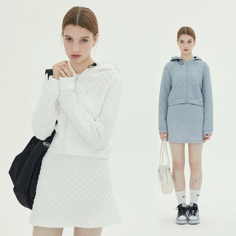 – Regular fit –Zipper up jacket –Short Skirt –Waffle fabric –Hooded design –Stopper drawstring – Long sleeve – Durable – Casual wear –100%cotton, Waffle fabric